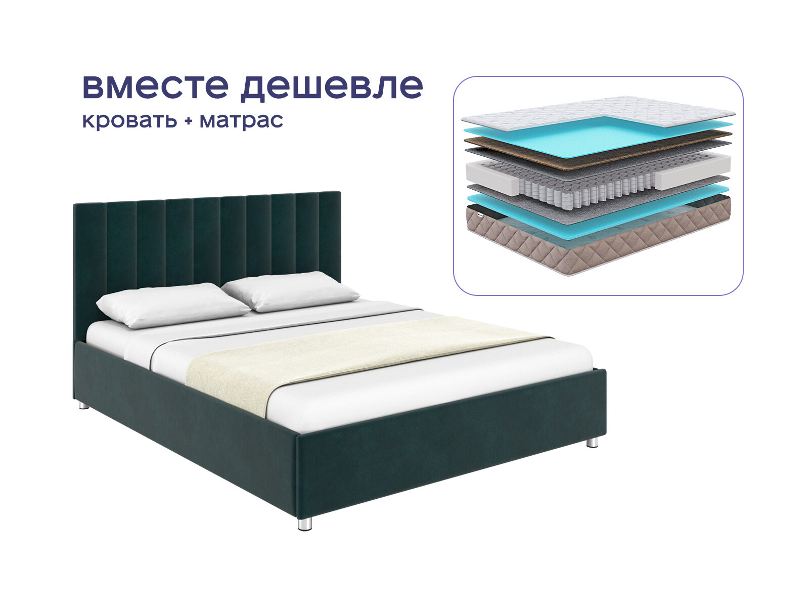 Комплект Лероса + Мистер Слип Soft Line Мини Хард — идеальное сочетание элегантности и ортопедического комфорта. Кровать с дизайнерским изголовьем и матрас с двойной жесткостью создают гармоничный дуэт для тех, кто ценит стиль, здоровый сон и выгодные решения. Этот комплект — инвестиция в ваш ежедневный комфорт и эстетику спальни. Экономия при заказе готовым спальным набором составит до 36%.