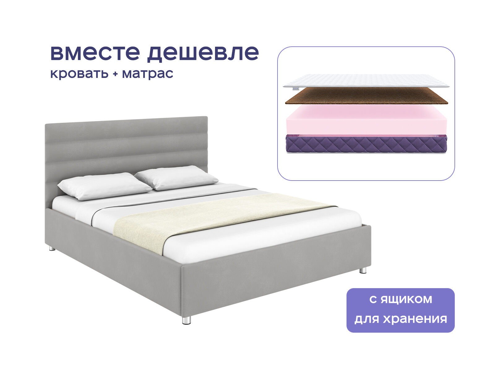 Комплект Левита с подъемным механизмом + Базилик Фреш 25 Кокос — это воплощение уюта и стиля для вашей спальни. Кровать с изящным изголовьем и матрас, который подарит ощущение отдыха на курорте. При покупке комплекта вы сэкономите до 36%, сочетая эстетичный дизайн со здоровым сном. Идеальное решение для тех, кто хочет превратить спальню в место роскошного отдыха без переплат.