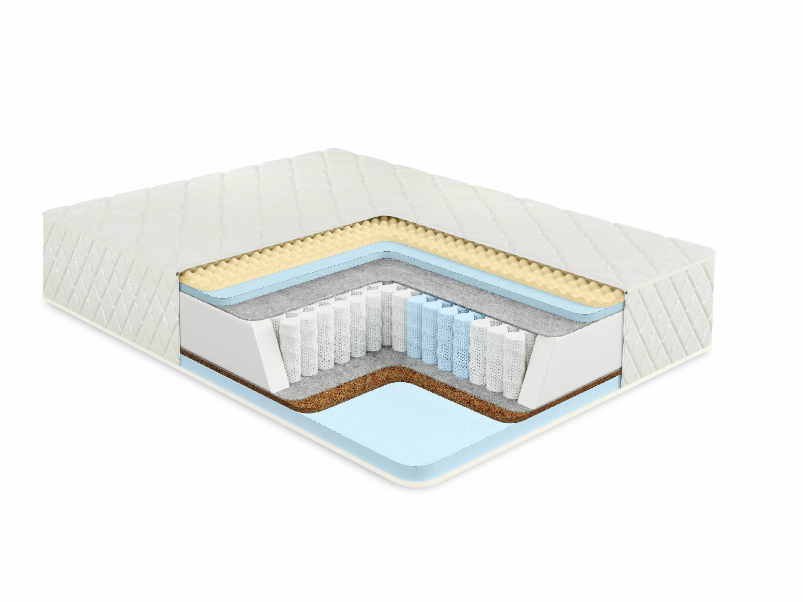 Пружинный матрас, в основе которого многозональный независимый пружинный блок 512 пружин на спальное место, обеспечивает ортопедическую поддержку и комфорт во время сна. Независимые пружины подстраиваются под формы человека, потому что каждая пружина находится в отдельном кармашке и обеспечивает равномерное распределение веса;
