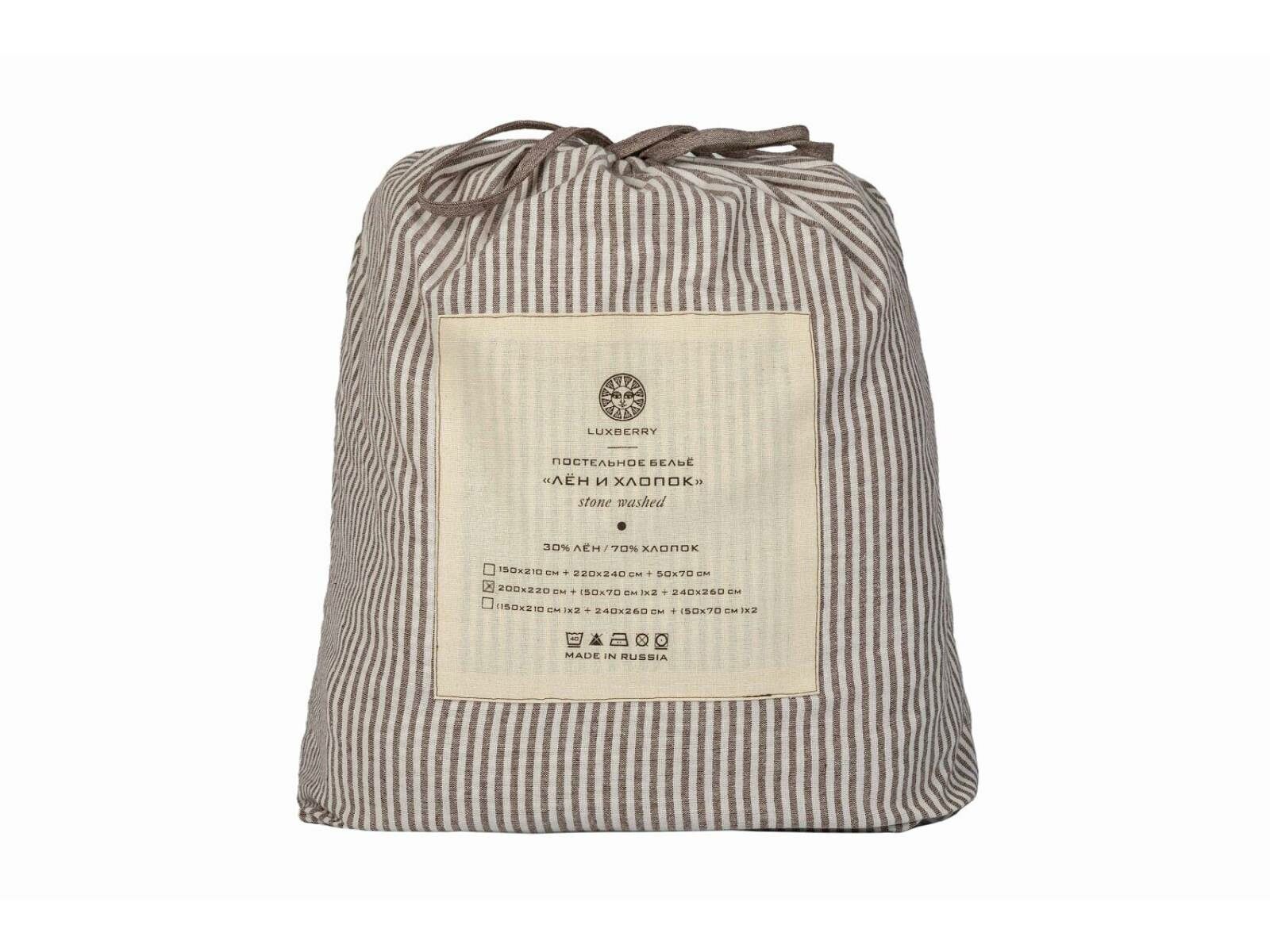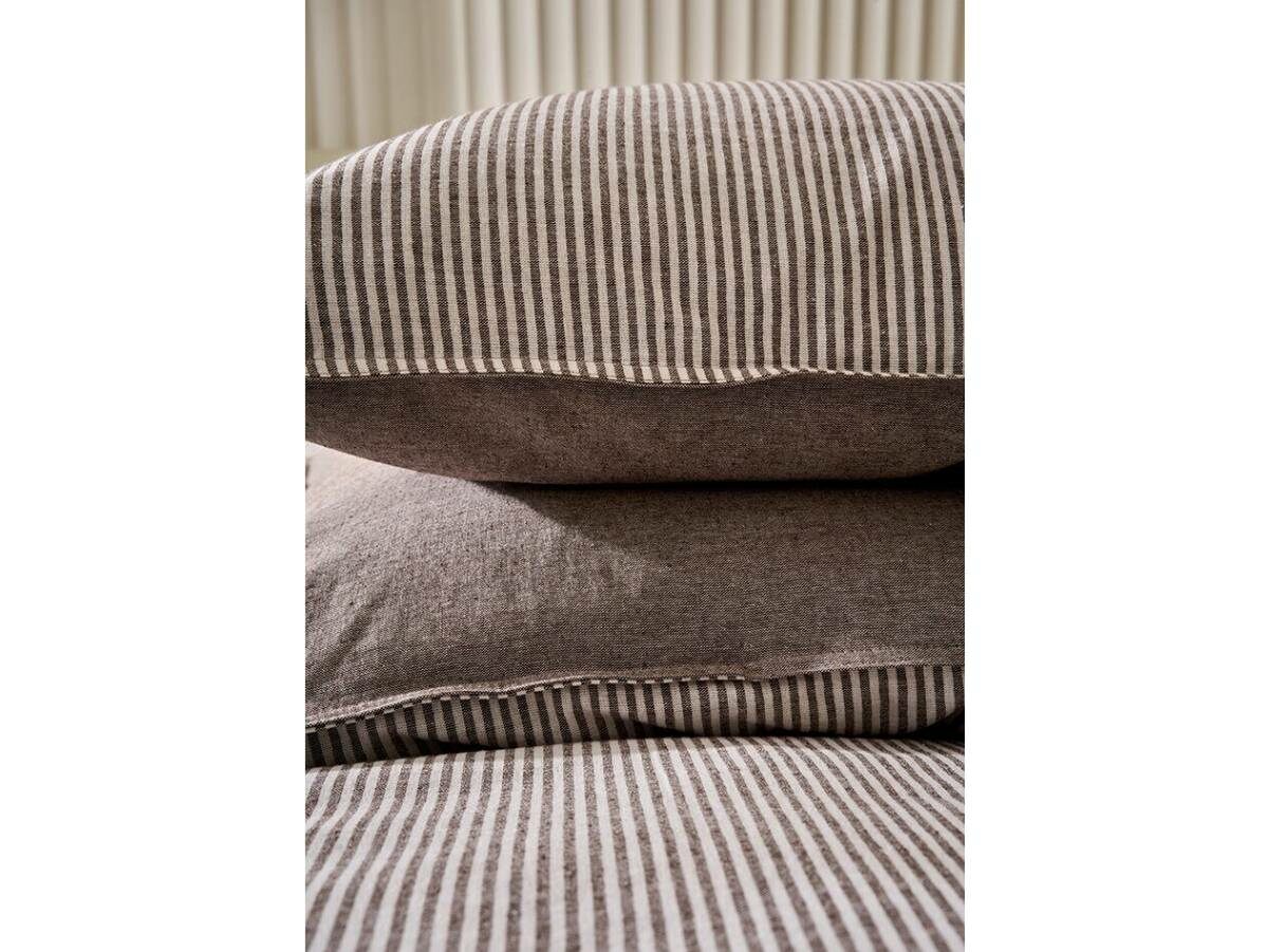 Наволочки и пододеяльник- двусторонние, одна сторона в полоску, оборотная - однотонная, коричневый меланж.