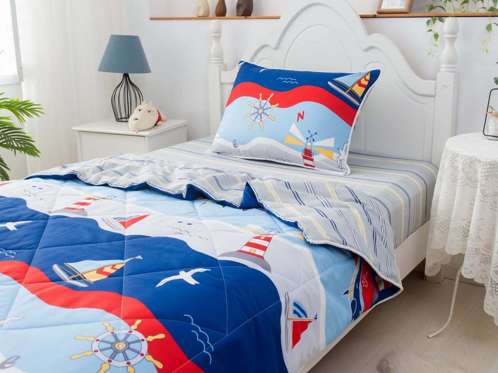 Само одеяло тонкое и легкое, но под ним ребенку не будет холодно зимой или жарко летом. Такое одеяло можно использовать в любое время года, 100% хлопок гарантирует качественный сон, т.к. натуральная ткань хорошо впитывает влагу и позволяет коже дышать. Натуральные материалы не вызывают аллергии. Огромная палитра оттенков и яркие дизайны комплектов понравятся детям и подросткам.