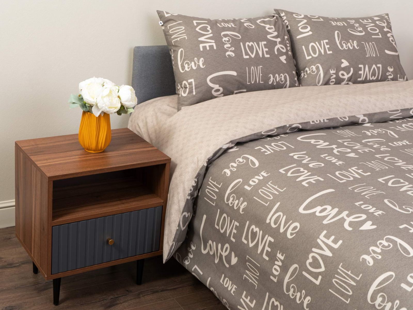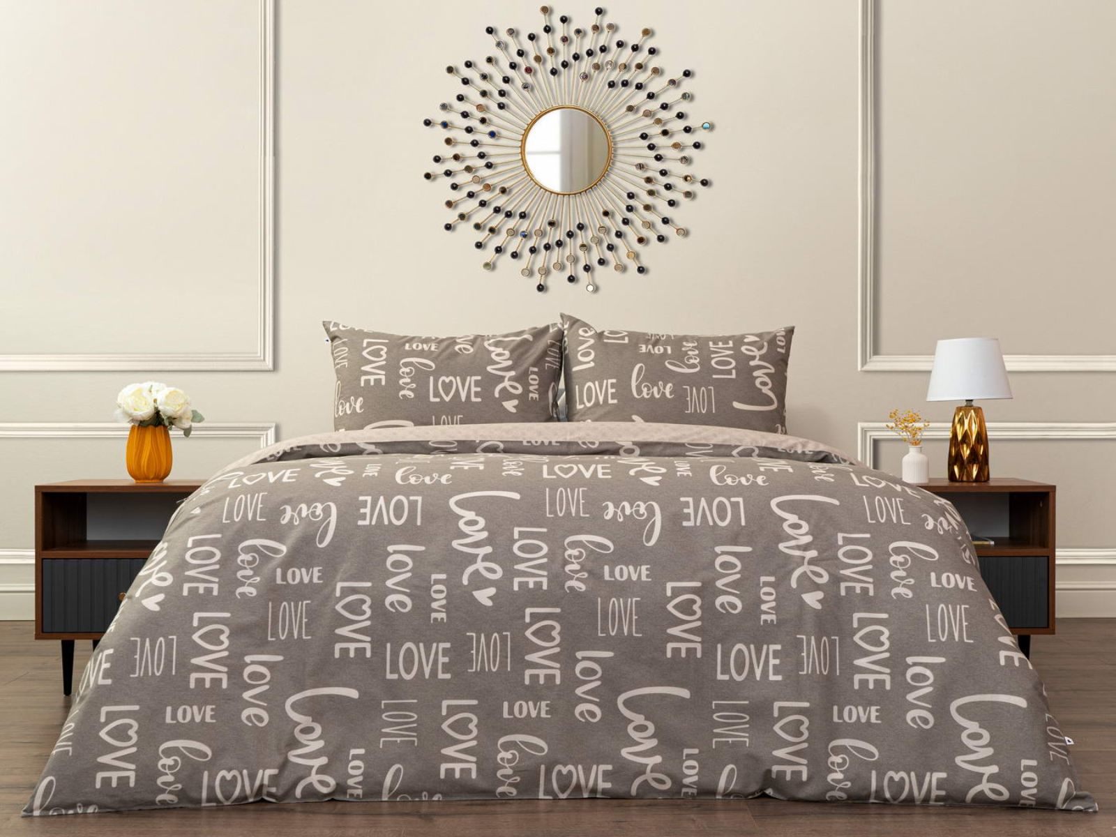 Комплект Мэгги легко стирается в обычной машине в бережном режиме и также легко гладится.