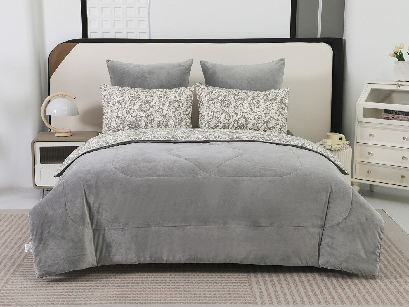 Новая коллекция комплектов «Роберто» с одеялом из однотонного велюра и принтованного сатина.
