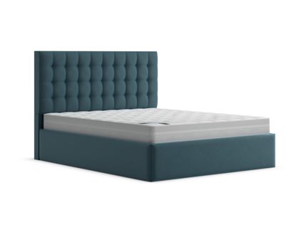Мягкая кровать с обивкой из велюра.