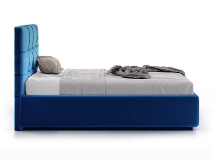 Кровать укомплектована IQ с подъемным механизмом и ящиком для белья без дна (дополнительная платная опция - дно к ящику IQ из HDF (ХДФ). Каркас кровати на цоколе, декоративный чехол на цоколе съёмный. Глубина ящика для белья - 30 см, без ограничения нагрузки на ящик.
