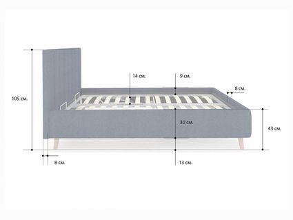 Кровать Alma подойдет для современных интерьеров спален, а благодаря деревянным ножкам впишется в стиль ретро, скандинавский или минимализм.