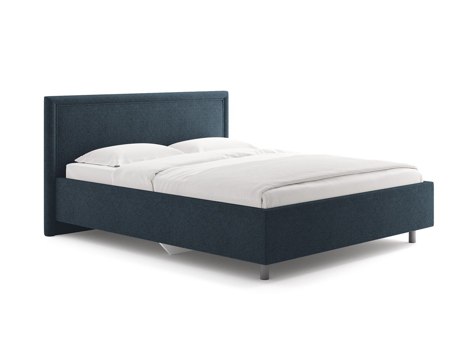 Элегантная интерьерная кровать с мягким изголовьем. Модель изготовлена из ДСП. Обратная сторона изголовья обита спандбондом, но её можно выполнить из основного обивочного материала.