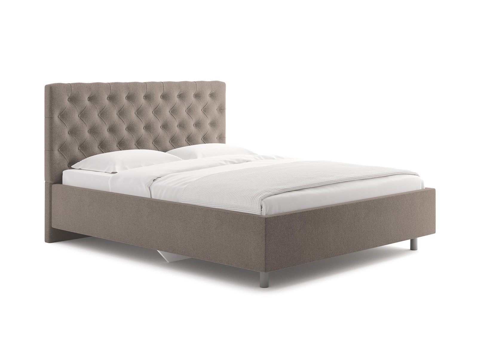 Элегантная интерьерная кровать с изголовьем, украшенным декоративными пуговицами и глубокой пиковкой. Модель изготовлена из ДСП. При необходимости кровать может быть укомплектована подъемным механизмом с бельевым ящиком или трансформируемым основанием Aquarius (размером 160-200).
