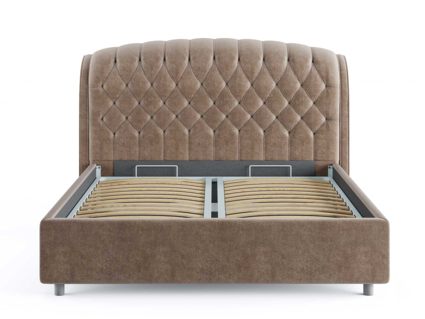 Кровать комплектуется металлическим основанием (без опор), которое имеет 13 рядов встроенных березовых ламелий на каждое спальное место, обеспечивая равномерное распределение нагрузки.