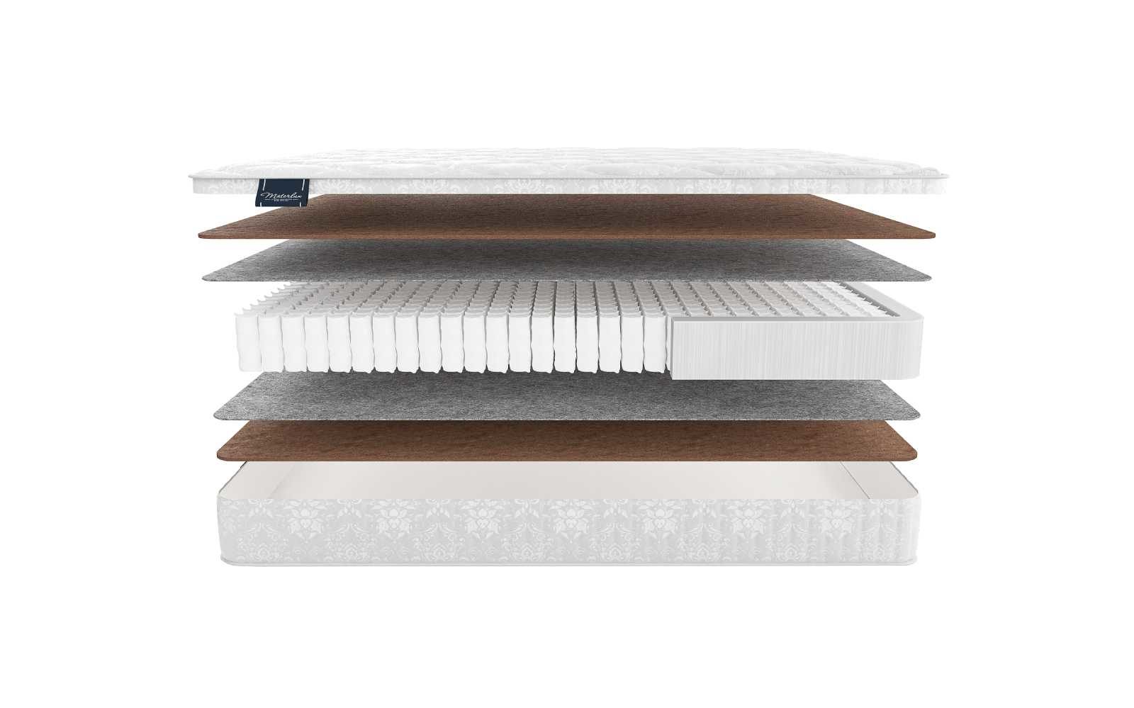 Все пружины размещаются в спанбондовых чехлах, изолирующих подвижные части матраса друг от друга. Таким образом производитель решает вопрос трения, быстрого износа и скрипа внутри модели.
