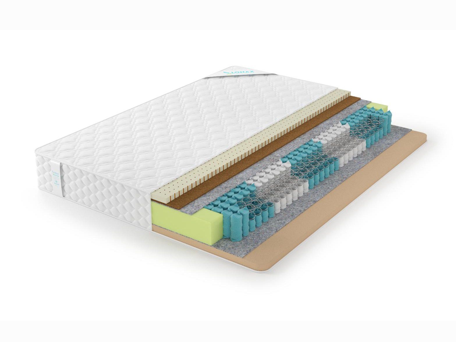 Матрас оббит серебристо-белым жаккардом, который украшает фирменный принт LONAX. Бурлет модели включает удобные пришивные ручки.
