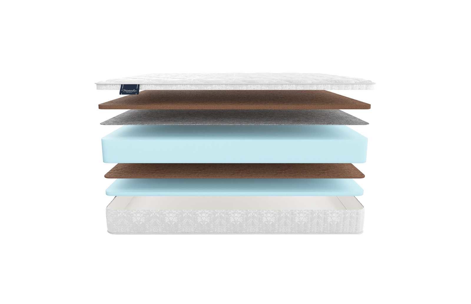 Матрас состоит из двух материалов. В качестве природного слоя выступает койра кокоса, а искусственным наполнителем является ортопедическая пена.