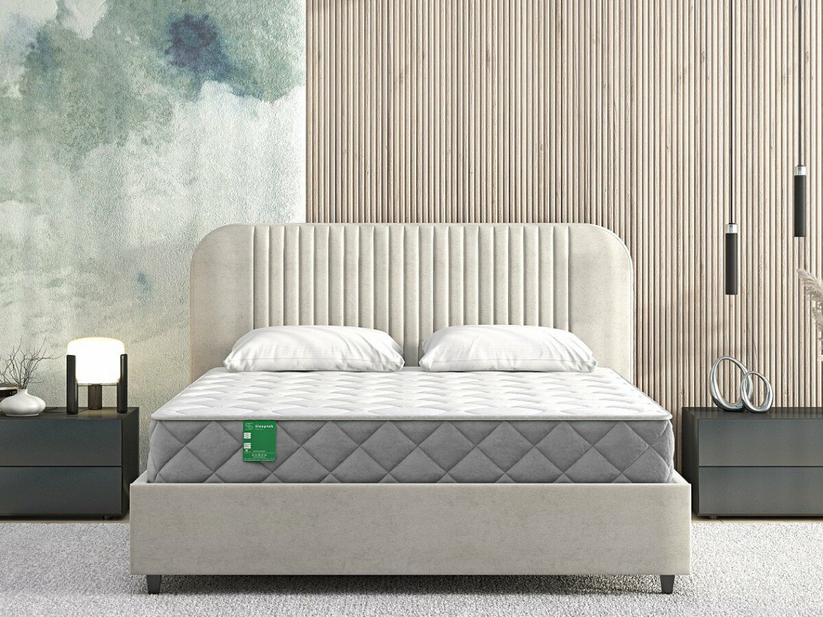 • Мягкий трикотажный чехол простёгивается по слою синтепона для дополнительного комфорта. Велюровый бурлет усиливает ощущение роскоши и подчёркивает стильный дизайн матраса.