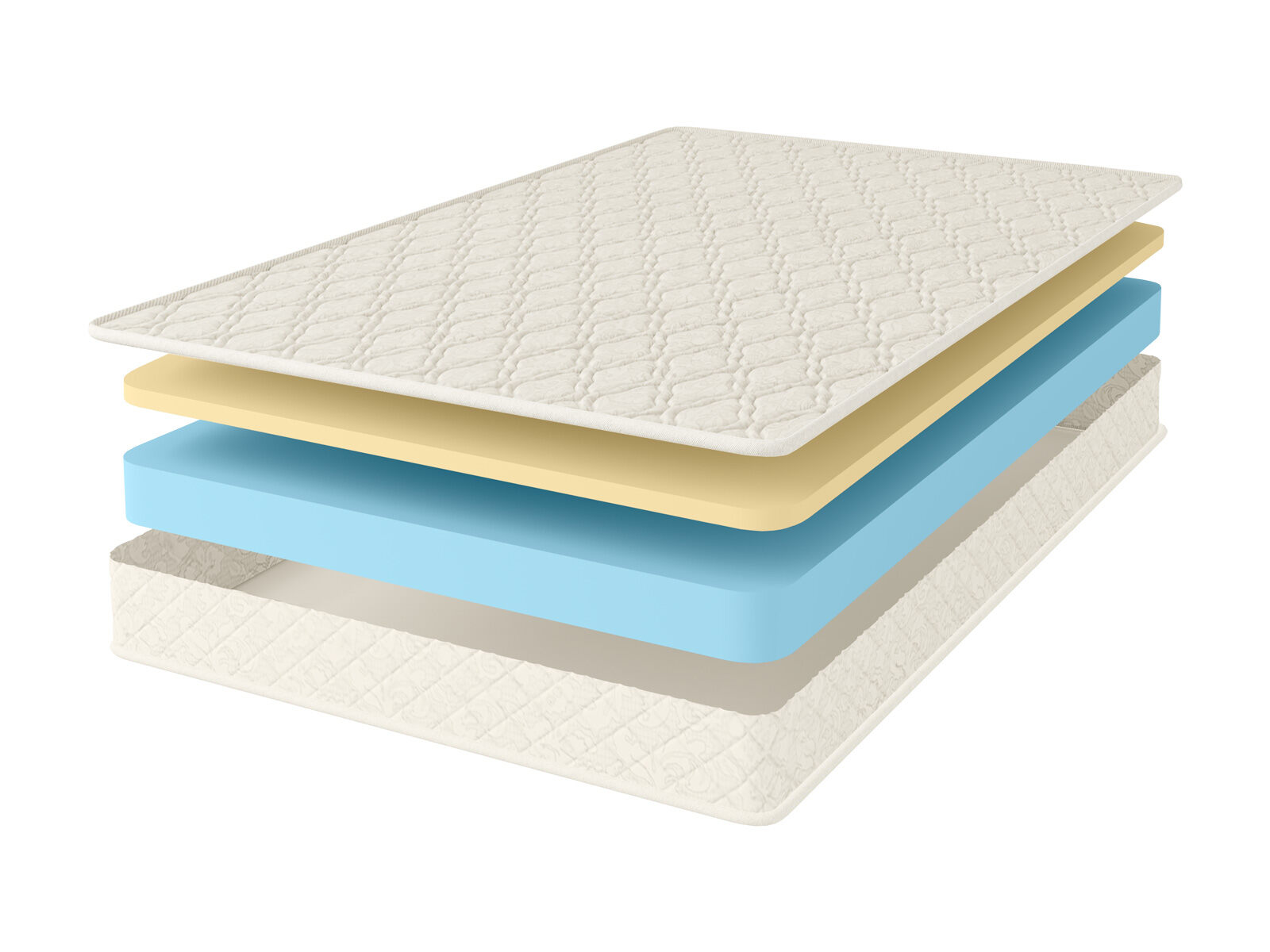 Жаккардовый чехол, выполненный с применением хлопкового волокна, завершает внешний облик изделия. Обивка ромбовидно простёгивается на синтепоне для повышения комфорта спящего.