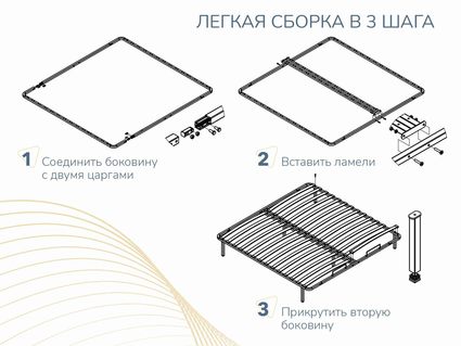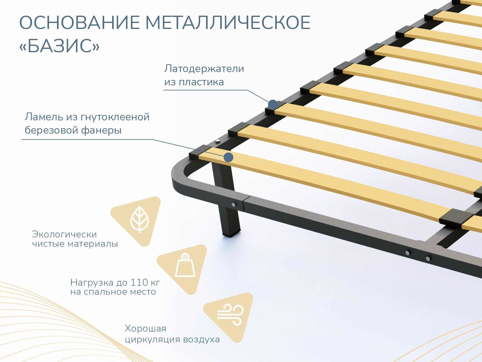 Основание Базис разборное предназначено для любых матрасов, как пружинных так и беспружинных. Оно улучшит анатомические свойства матраса и продлит срок его службы. Основание очень прочное и долговечное, так как его каркас выполнен из металла, а широкие ламели из березы. Основание поставляется в компактной упаковке в разобранном виде, с ножками и необходимым комплектом фурнитуры. Базис разборное можно использовать как с ножками, так и без них, так что оно подойдет к кровати с любым каркасом.