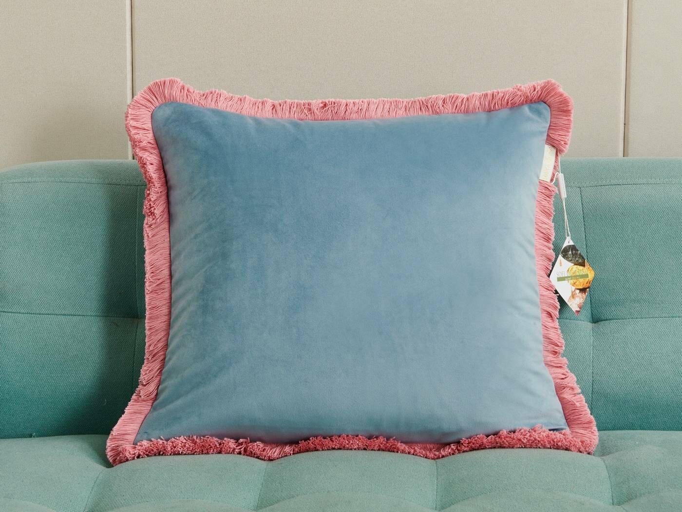 Коллекция пошита из мягкого и приятного на ощупь велюра плотностью 250г/м2. Наволочки с контрастной хлопковой бахромой добавят ярких акцентов и жизнерадостности в ваш интерьер. Большой выбор расцветок поможет расставить цветовой акцент и подчеркнет индивидуальность Вашей гостиной.