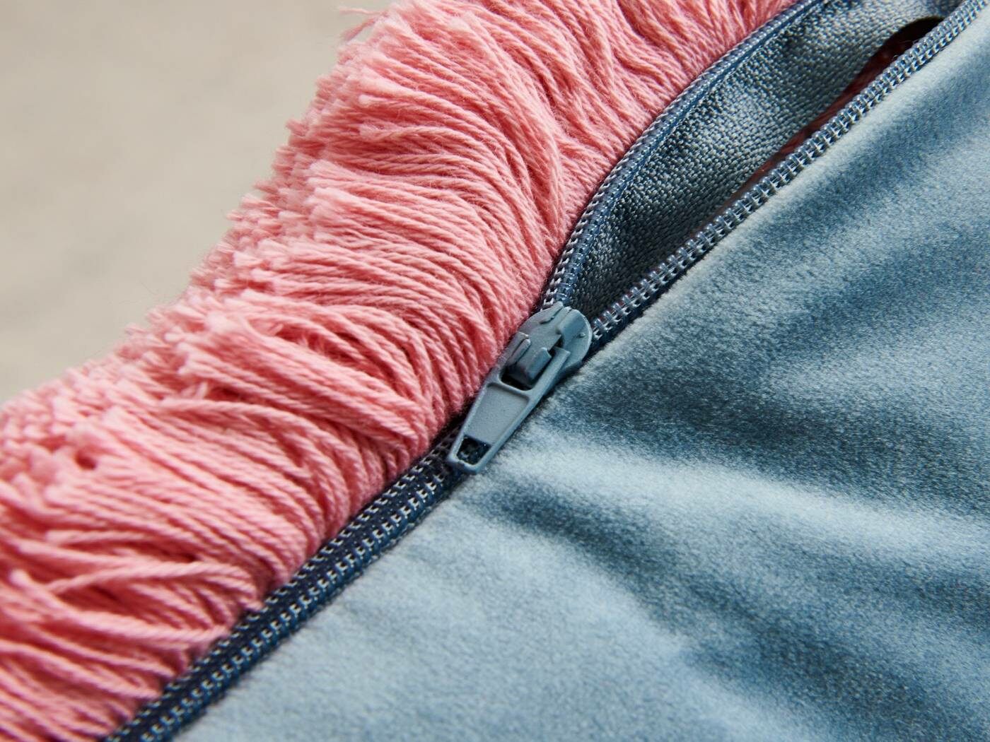 Особенность : с бахромой, потайная молния под цвет вшита в край наволочки.