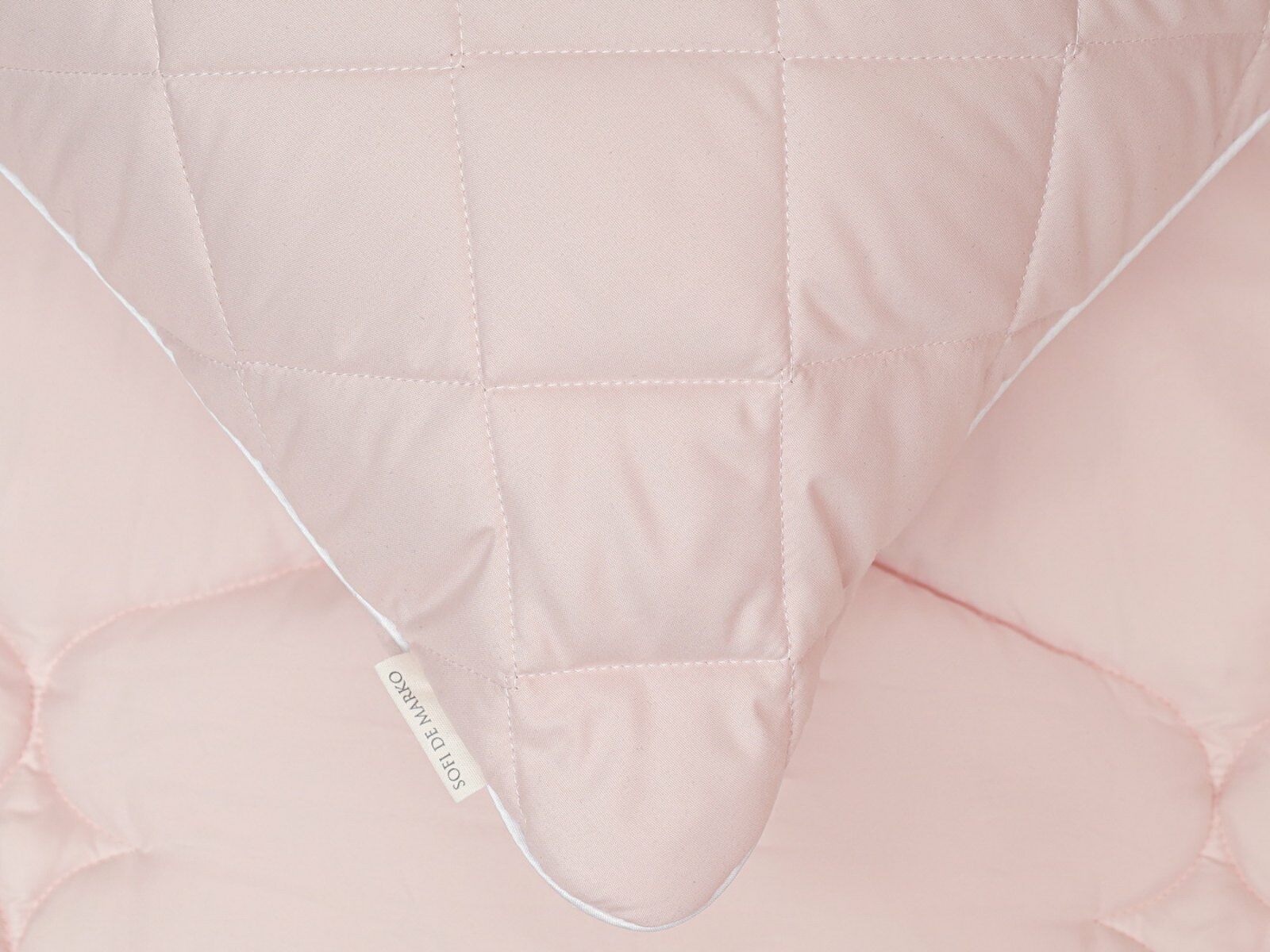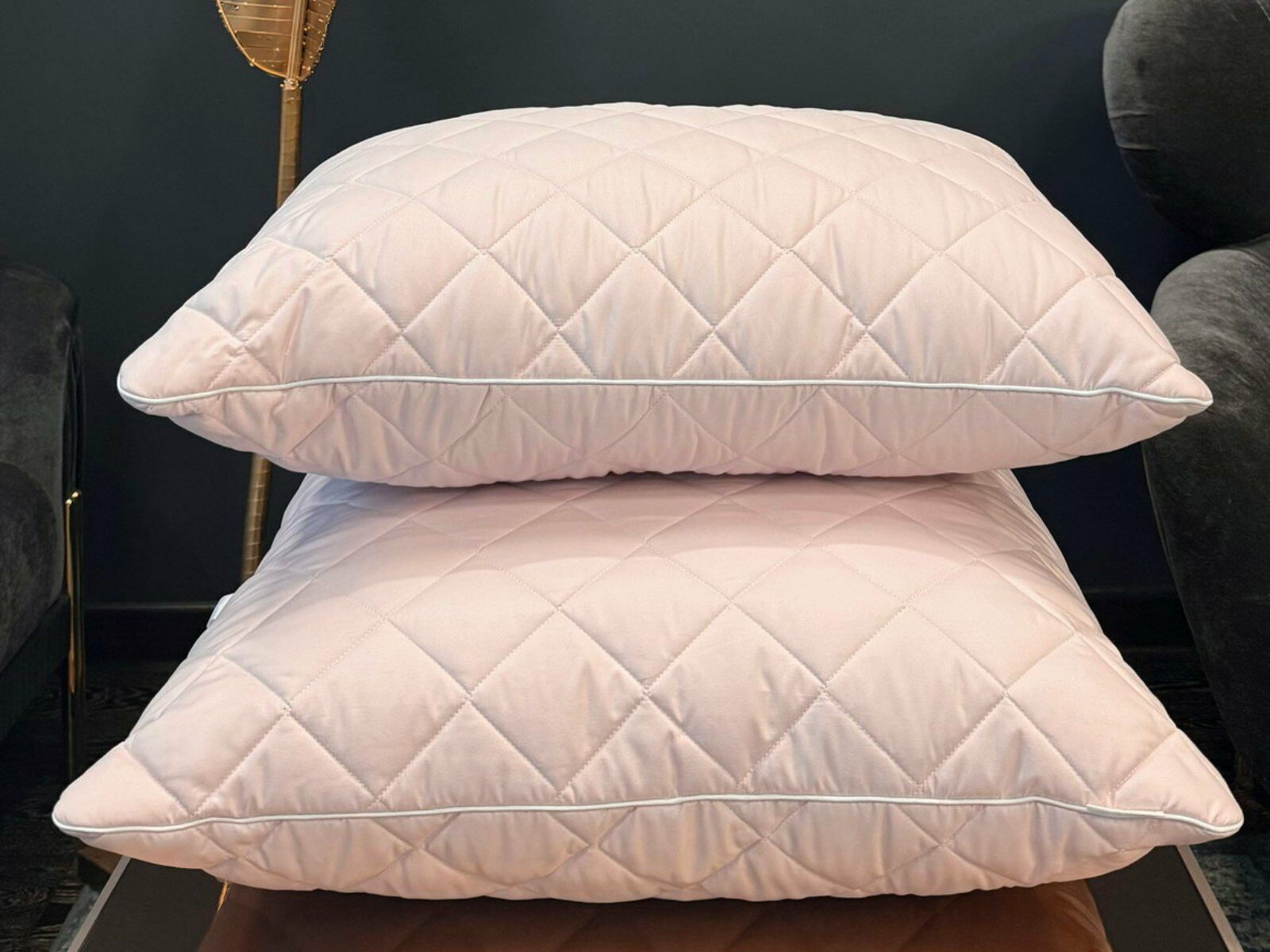 Подушки стеганые с белым атласным кантом по периметру.