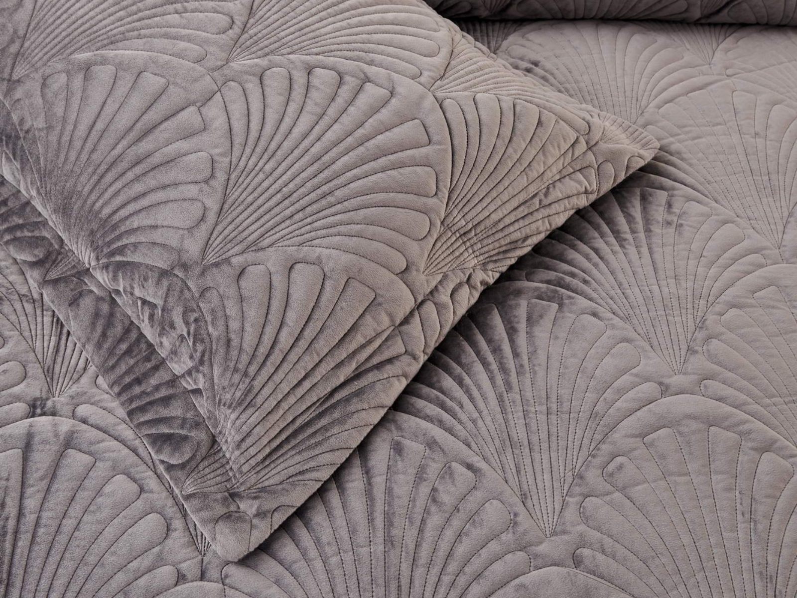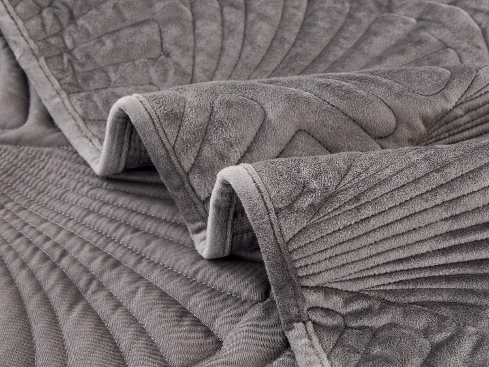Роскошное велюровое покрывало Ариэль станет изюминкой любого интерьера, ведь оно потрясающе выглядит и приятное на ощупь. Обратите внимание на стежку покрывала – она выполнена в виде ракушек с эффектом 3D. Из-за особого плетения, велюровая ткань покрывала отражает свет и красиво переливается при различном освещении.