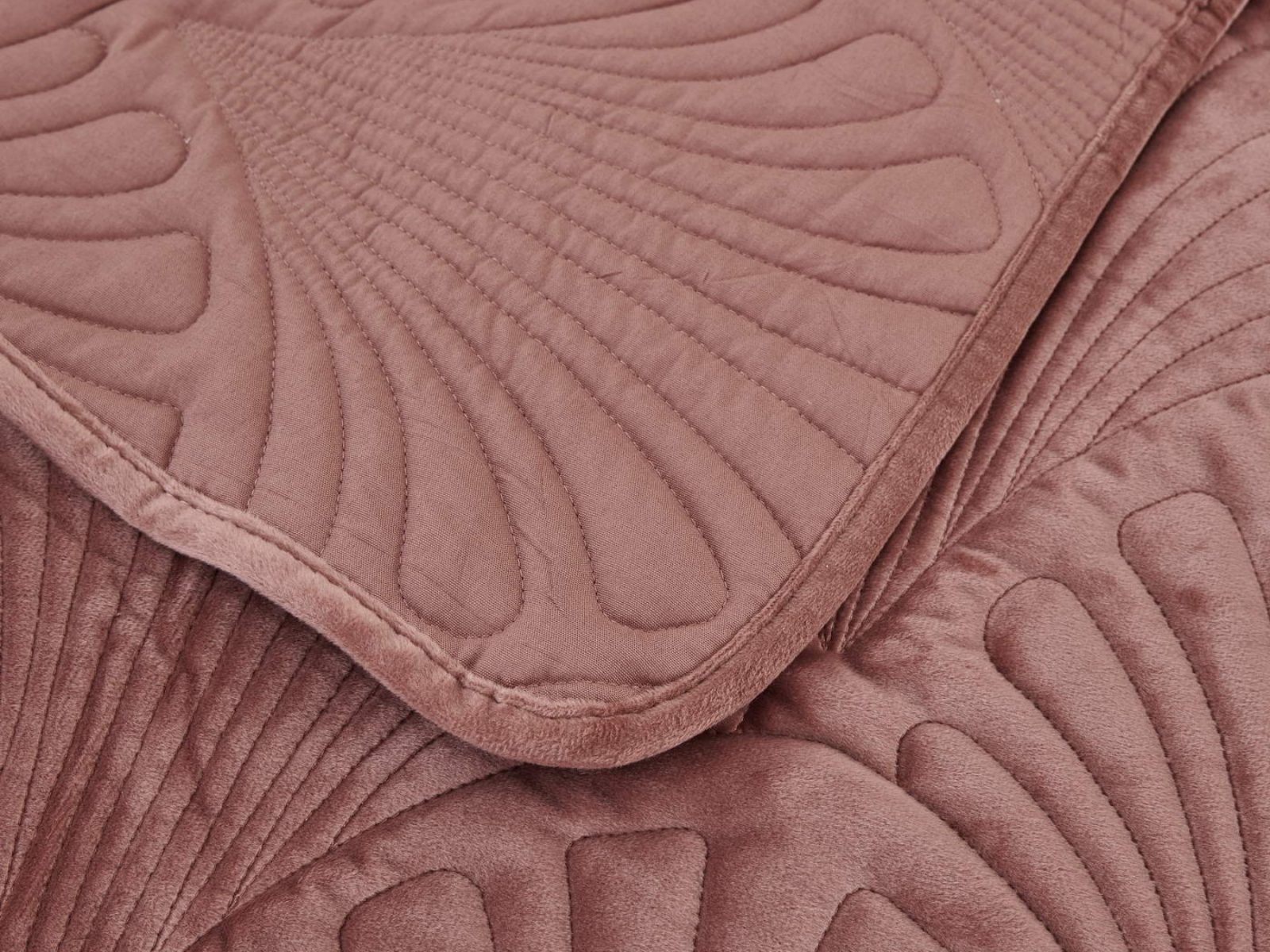Роскошное велюровое покрывало Ариэль станет изюминкой любого интерьера, ведь оно потрясающе выглядит и приятное на ощупь. Обратите внимание на стежку покрывала – она выполнена в виде ракушек с эффектом 3D. Из-за особого плетения, велюровая ткань покрывала отражает свет и красиво переливается при различном освещении.