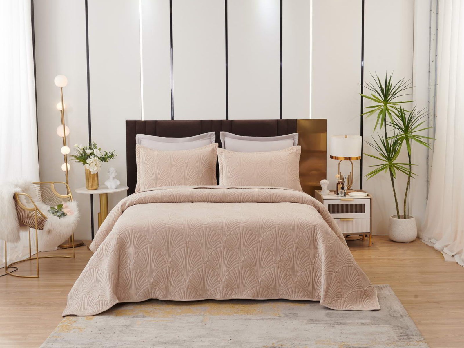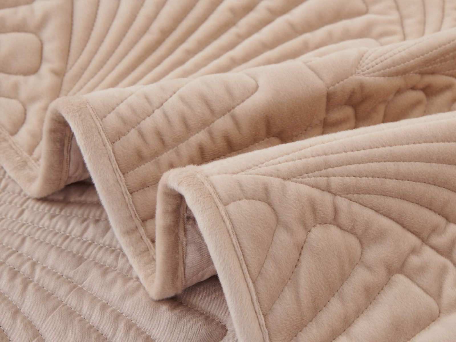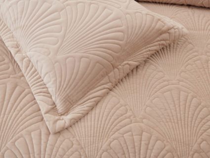 Роскошное велюровое покрывало Ариэль станет изюминкой любого интерьера, ведь оно потрясающе выглядит и приятное на ощупь. Обратите внимание на стежку покрывала – она выполнена в виде ракушек с эффектом 3D. Из-за особого плетения, велюровая ткань покрывала отражает свет и красиво переливается при различном освещении.