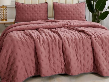Двусторонние стеганные покрывала Броуди легкие и прочные. В комплект входят покрывало и одна либо две наволочки (50х70 см) из аналогичного материала в зависимости от размера. При желании покрывало можно использовать как легкое одеяло.