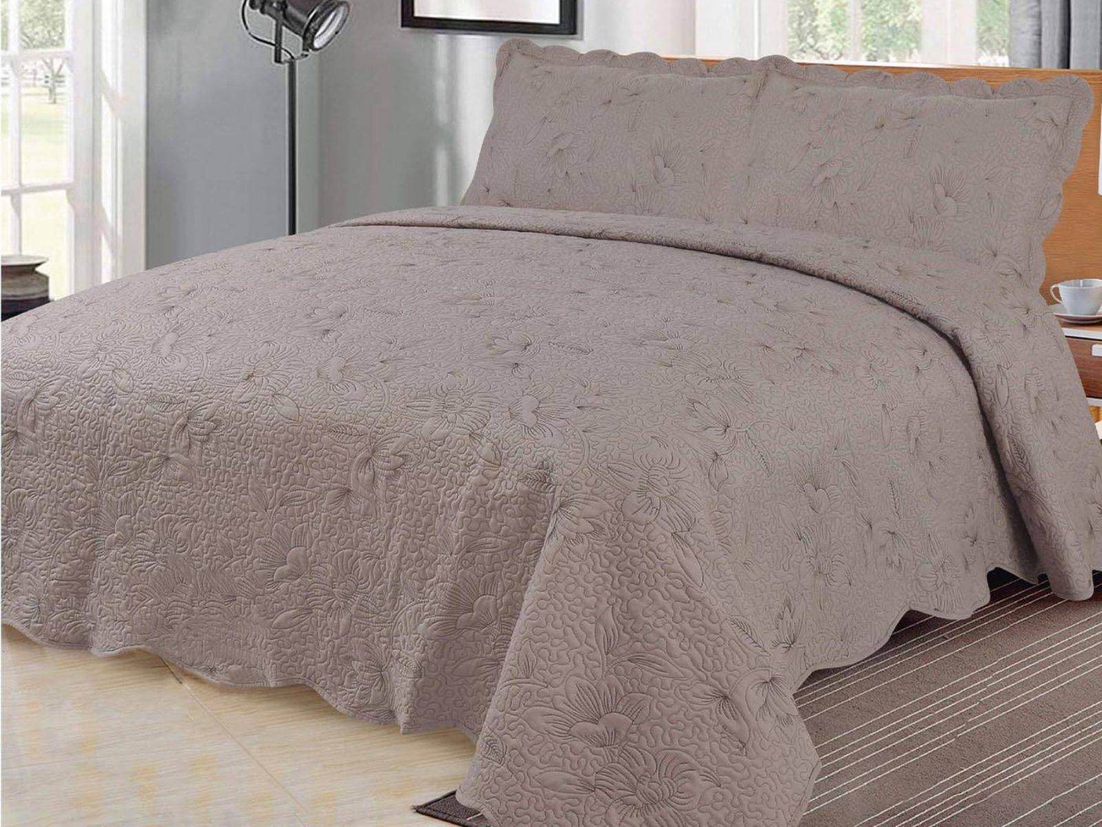 В комплект входят покрывало и одна либо две наволочки (50х70 см) из аналогичного материала в зависимости от размера. За изделиями легко ухаживать: стирка при температуре не выше 30 градусов в бережном режиме. Важно хорошо просушить! При правильном уходе вещь прослужит долгие годы, не потеряв форму и цвет.