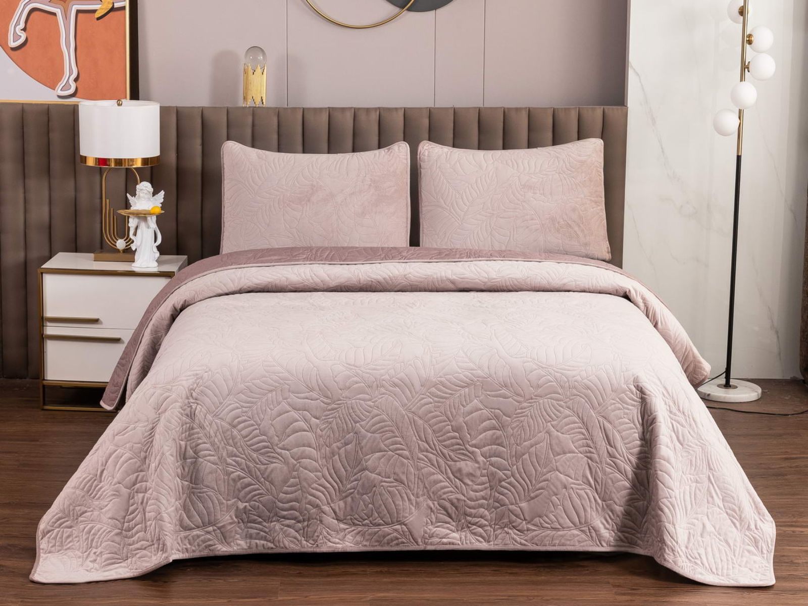 Уютные, мягкие велюровые покрывала Мелисса будут желанны в любом доме. Коллекция покрывал Мелисса выполнена в классических тонах, что делает изделия подходящими для большинства интерьеров, а изящный рисунок в виде листьев подчеркивает индивидуальность.