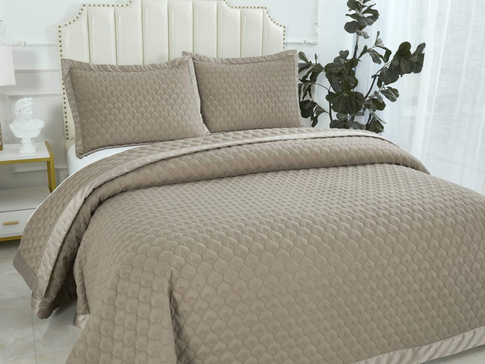 Вашему вниманию представлены атласные покрывала Роксалана. Атлас очень плотный, красивый и эффектный материал, он мягкий и шелковистый на ощупь, а атласные вещи смотрятся потрясающе.