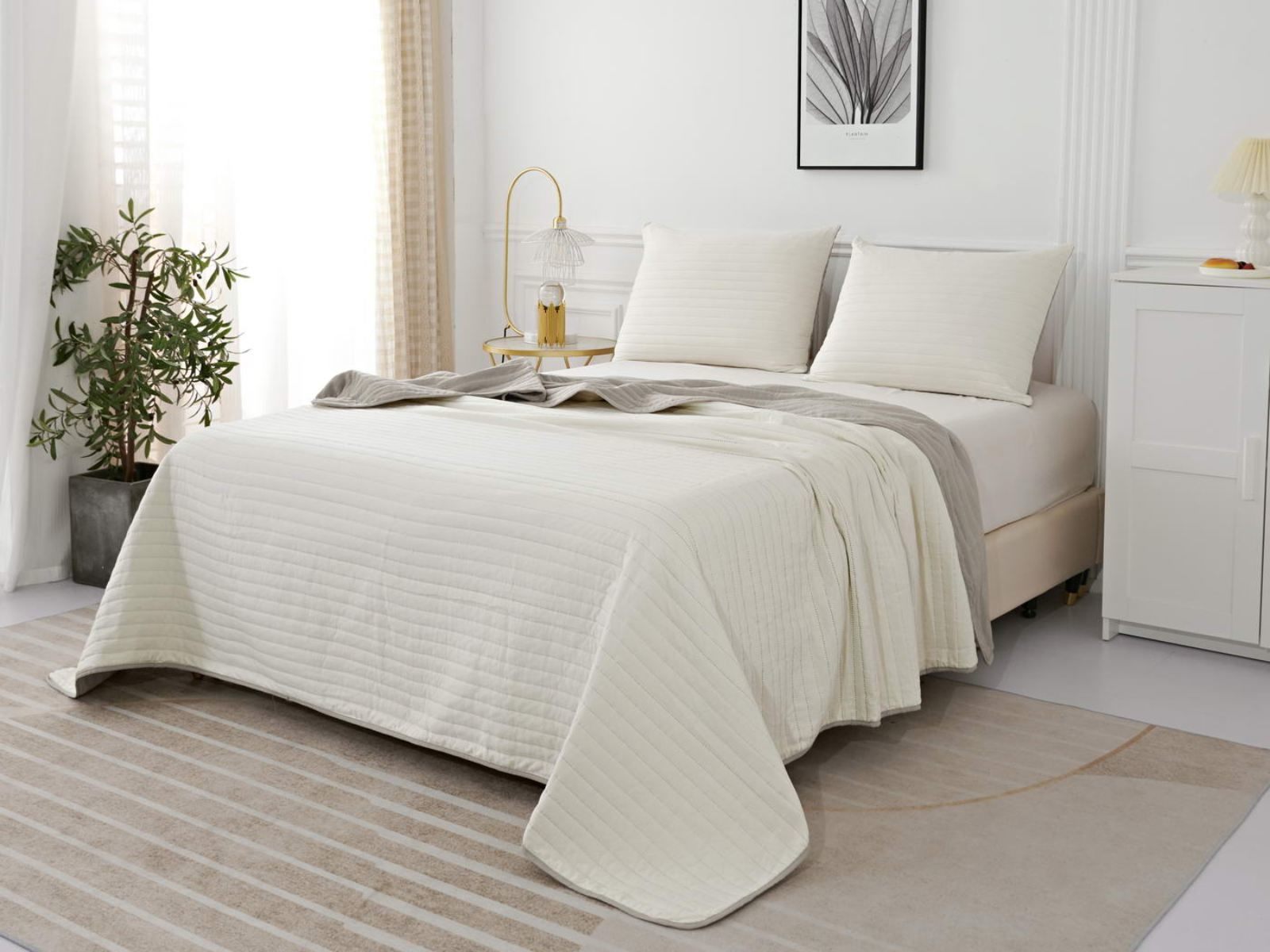Двусторонние стеганные покрывала Самуэль выполнены из вискозы и хлопка, они легкие и прочные. В комплект входят покрывало и одна либо две наволочки (50х70 см) из аналогичного материала в зависимости от размера, вы можете использовать покрывало по назначению, либо в качестве постельного белья. В любом случае, вы будете в восторге от этого комплекта!