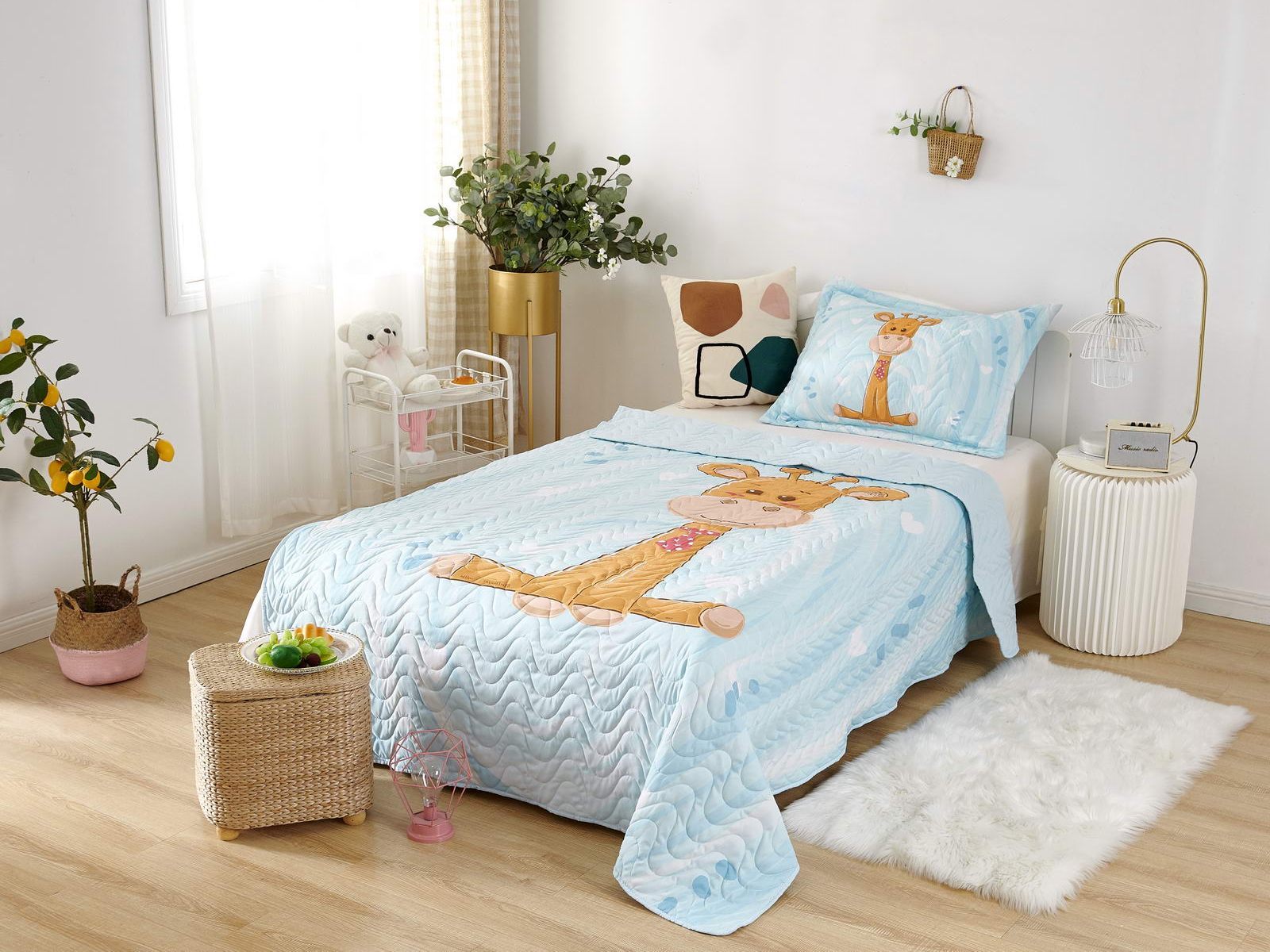 Детские покрывала - это особая забота об уюте и комфорте ребенка. Красивое, стеганое покрывало коллекции «Sunny day» придаст любой детской спальне яркую индивидуальность. Волнистые стежки делают изящные покрывала еще более выразительными и изящными. К ним в комплекте идут наволочки, у них есть интересная особенность, которая непременно понравится ребенку– небольшие ушки.