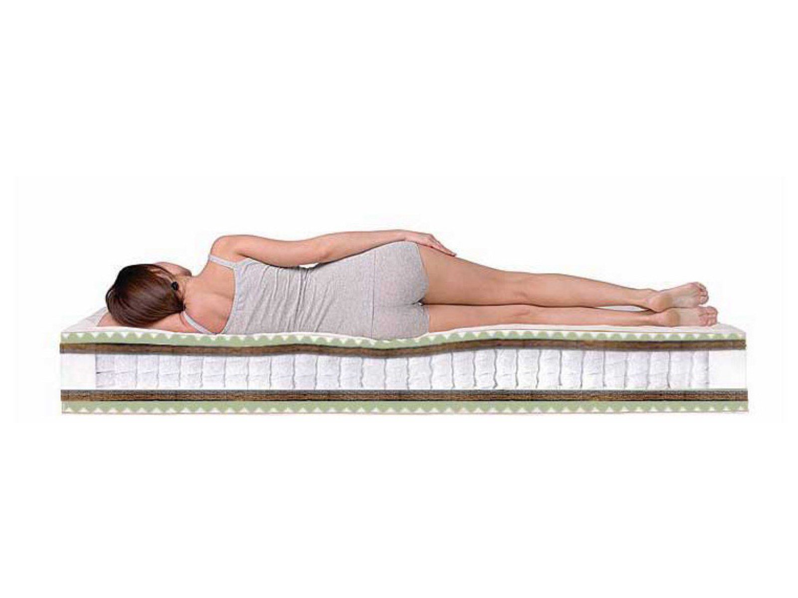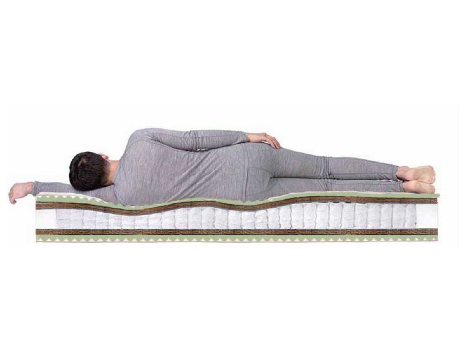 Матрас Space Massage TFK относится к симметричным моделям, то есть наполнение одинаковое с каждой стороны. Первый слой - это бикокос - жесткий и прочный материал на основе кокосового волокна, придающий матрасу среднюю жесткость и продлевающий срок его службы. Второй слой - пена Ergo Foam - высокоэластичный и мягкий материал с прекрасным воздухообменом и рельефной поверхностью. Этот внешний слой призван повысить комфортность матраса, а микромассажный эффект способствует полной релаксации во время сна. Посередине расположен блок независимых пружин TFK, придающий матрасу отличные ортопедические свойства, так как при нагрузке продавливается только конкретный участок, а соседние пружины не реагируют, что позволяет спящему принять удобное и полезное для позвоночника положение. Общая высота модели Space Massage TFK составляет 24 см, а максимальная нагрузка на одно спальное место - 110 кг. Дополнительный комфорт матрасу придает мягкий жаккардовый чехол.