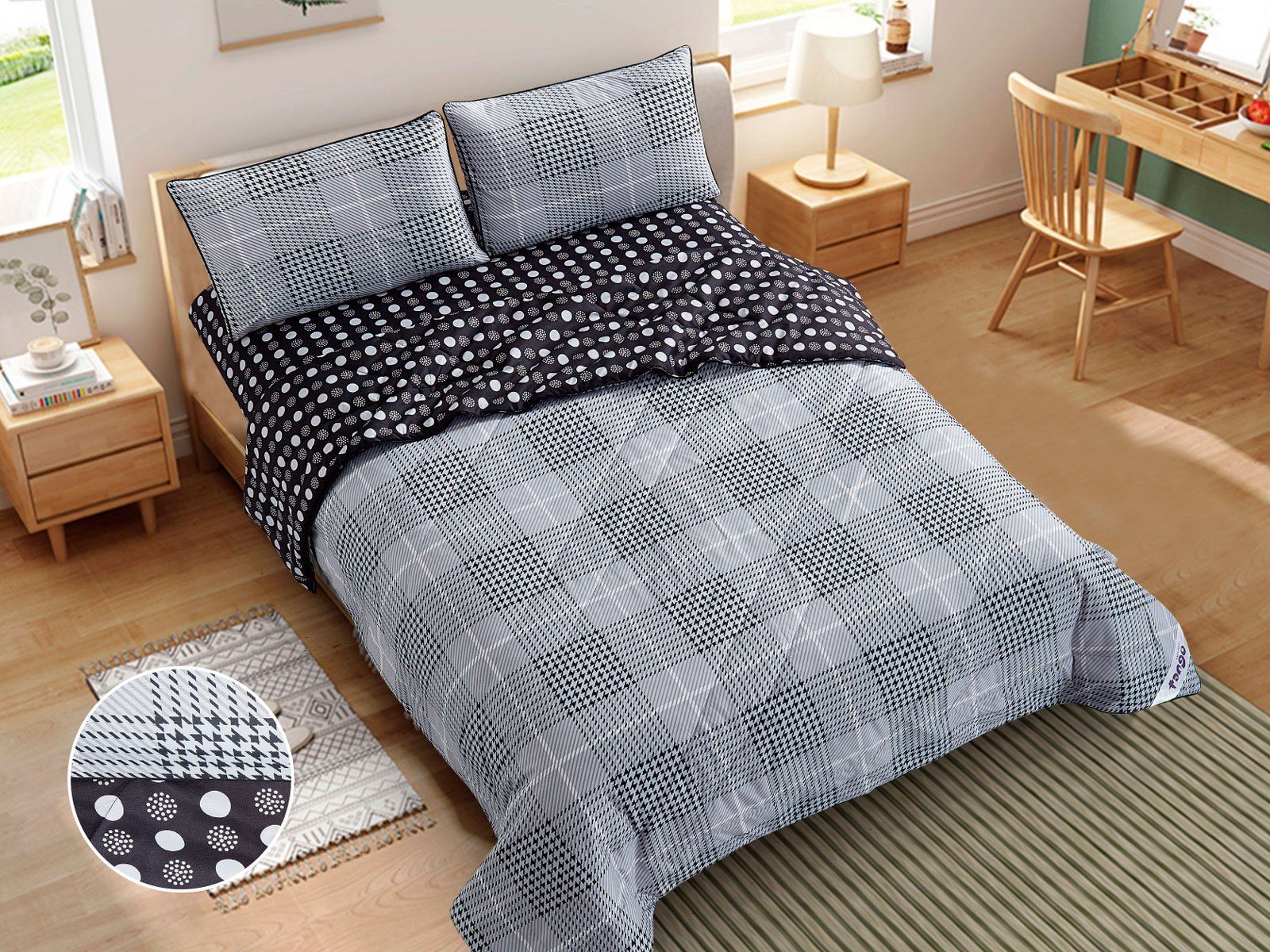 В данный комплект вместо пододеяльника входит облегченное одеяло. Комплект подойдет тем, кто устал от мучительного натягивания пододеяльников на одеяло.